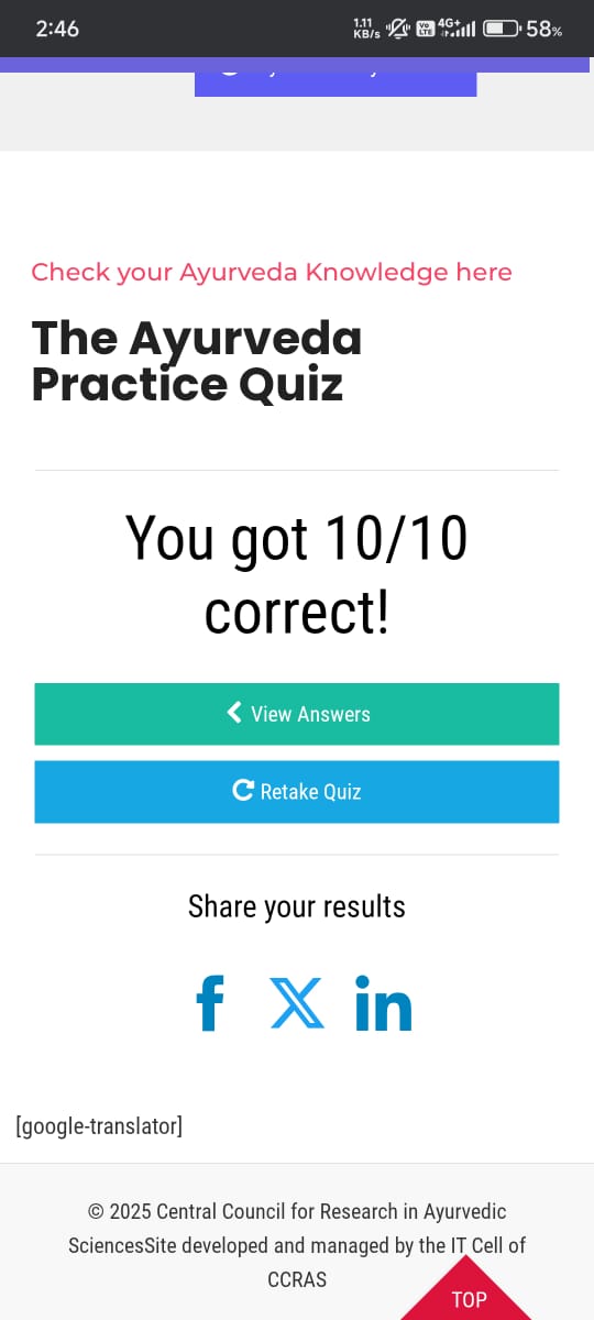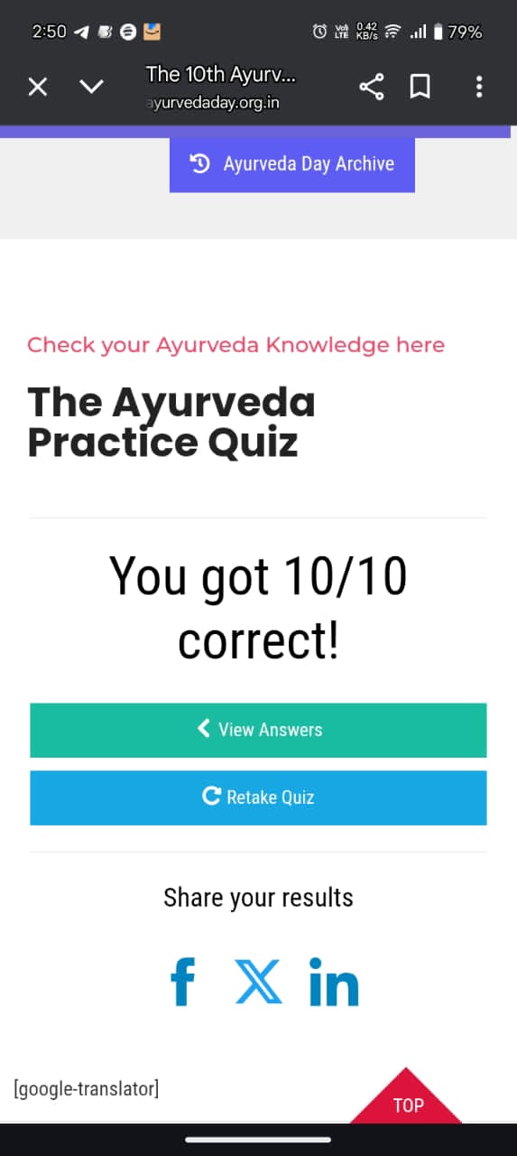 AYURVEDA QUIZ COMPETITION FOR 9TH AYURVEDA DAY OCTOBER 2024